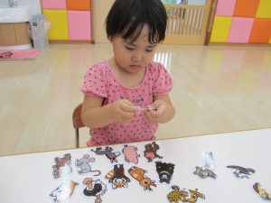 りんご組さんが、どうぶつ合わせのパズルをして遊びました?