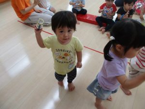 もも組のお友だちも、タンバリンを持ってニコニコ笑顔![]()