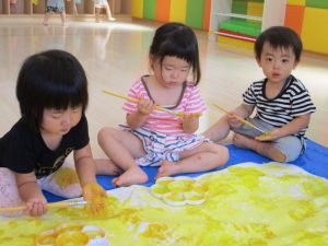 ダイナミックに色付けを楽しんだ子ども達は、「もう1枚作りたい