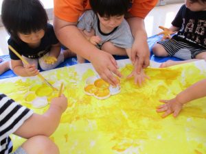 ?りんご組?の色より、少し濃い黄色を乗せていきました![]()