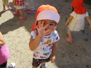 りんご組のお友だちは、てんとう虫?を見つけました![]()