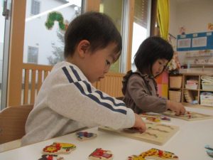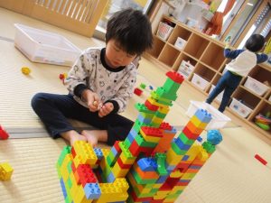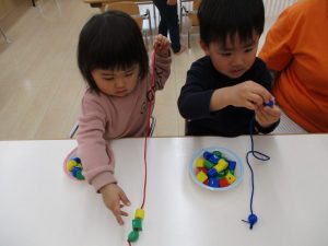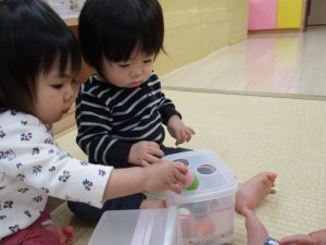 ポットン落としでは、もも組のお友だちが仲良く遊んでいました![]()