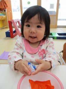 折り紙をビリビリにしたり、クシャクシャにしたり