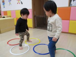 今週は、製作や外遊び大好きなマット遊びや風船遊び、フラフープでケンケンパッ