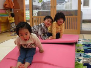 マット遊びは、境港園の子どもたちの大好きな遊びの定番です