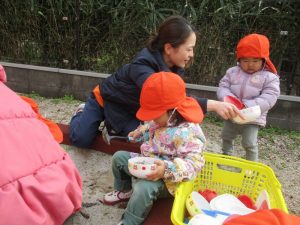 りんご組の子どもたちは、自分でちゃんと靴を履く事も出来て、とても立派でしたよ