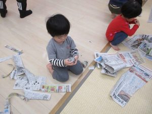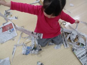 畳み一面に広がった新聞紙