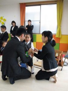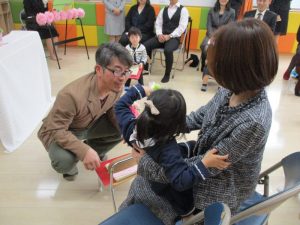 一人ひとり、お父さんお母さんからお祝いの言葉をかけてもらいました![]()