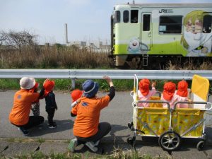 今回は、砂かけばばあ列車の見送りをしました![]()