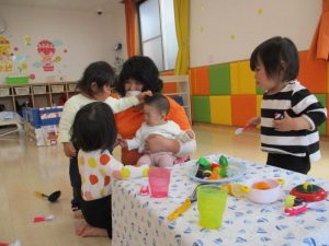 おままごとでは、?もも組のお友だちに優しくしてあげるお姉さんたちの姿が見られましたよ![]()