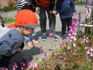 きれいなお花を見つけると、手を伸ばしたくなる気持ちは子どもたちも一緒です![]()
