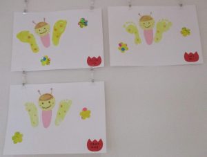 みんな足型制作の時は涙が出ちゃいましたが、こんな可愛い作品が出来ましたよ![]()