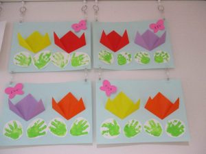 ?もも組の制作は、可愛い手形がいっぱい並びました![]()