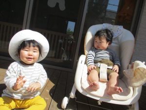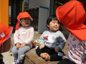 ?もも組のお友だちも、テラスで日向ぼっこです![]()