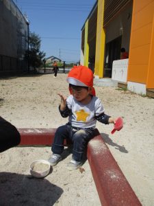 砂場遊びも大好きで、夢中になっちゃいます![]()