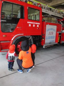 消防署につくと、目の前に大きな消防車と救急車がドーン