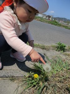 タンポポの綿毛をツンツンしてみたり![]()