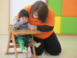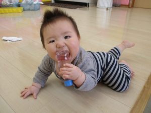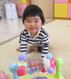 ?もも組のお友だちは、玩具で遊んだり腹這いで元気に遊びましたよ