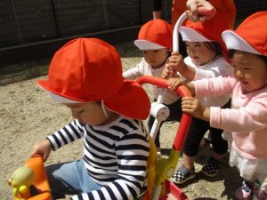 1台しかない三輪車ですが、みんな順番を守って仲良く遊べます