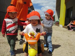 お友だちが乗っていると、みんなで『よいしょよいしょ』と押してあげる優しい場面も見られました