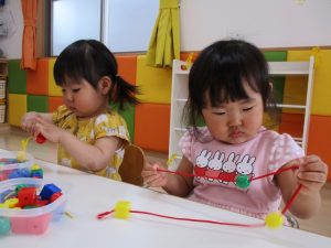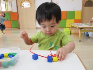 ひも通し遊びも、とても上手になりました![]()