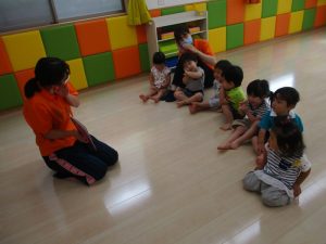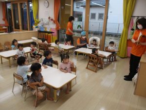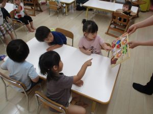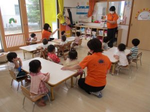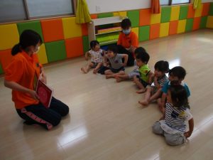 子どもたちは絵本がとても大好きなので、とても集中して聞き入ってくれています![]()