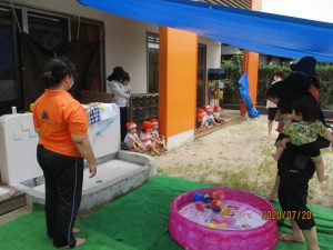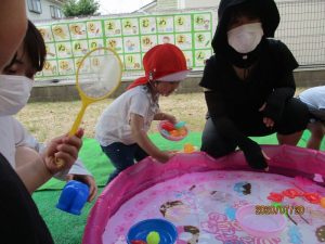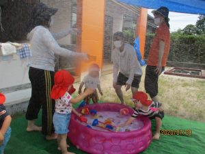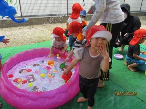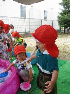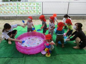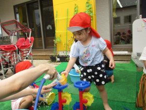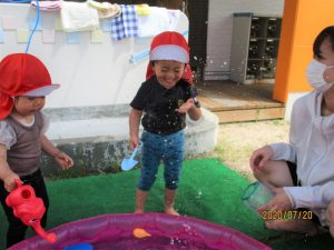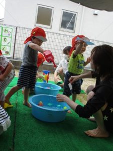 第1回目の水遊びは、子どもたちはもちろん先生たちも思いっきり楽しんだ水遊びとなりました![]()