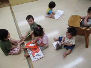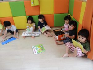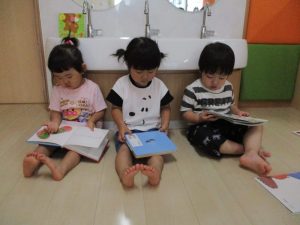 もも組の子どもたちも、みんなが絵本に夢中なんです![]()