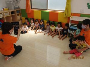 今週前半の読み聞かせの様子です 今回選んだ絵本は・・・ 1冊目は【はなびが あがります...