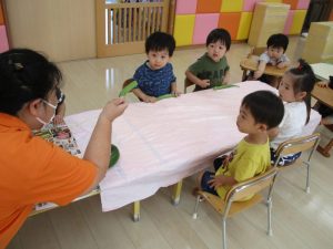 とても暑い日が続いて戸外に出られなかったり、体調がすぐれない子もいたりで、なかなか水遊びが出来ない日が続いてしまいました・・・![]()
