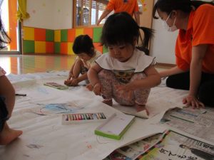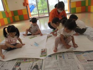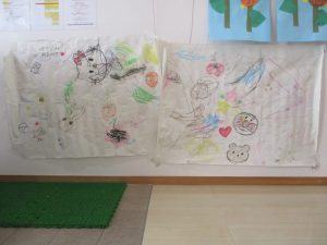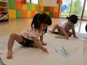 大きな模造紙に、いっぱいお絵描きをしましたよ?