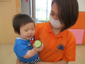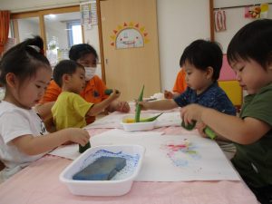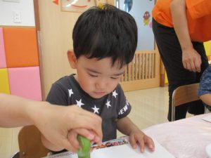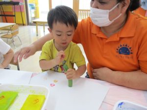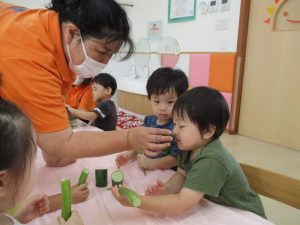 オクラとキュウリで、野菜スタンプを楽しみました![]()