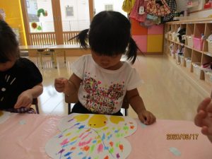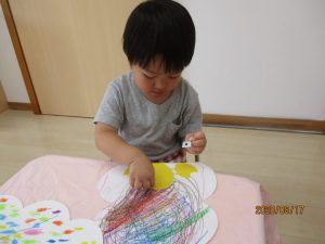 りんご組の製作は、夏らしく可愛いヤドカリさんです