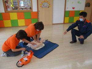 境港消防署の隊員さんに来て頂き、救命救急訓練を行いました?
