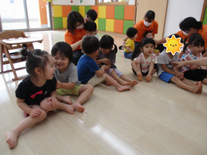 子どもたちも、絵本に合わせて隣のお友だちに“こちょこちょ”![]()