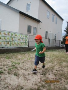 バトンを持って走って、次のお友だちにバトンを渡す事を教えてもらいましたよ