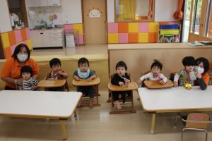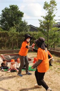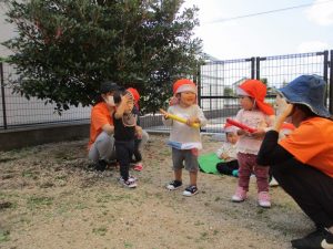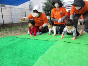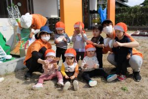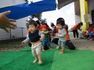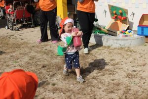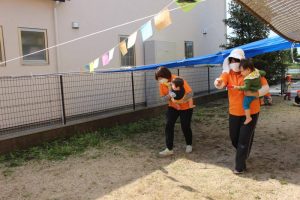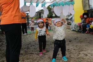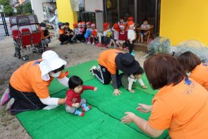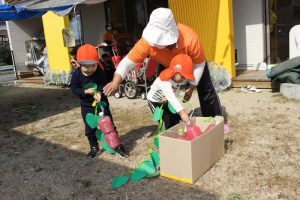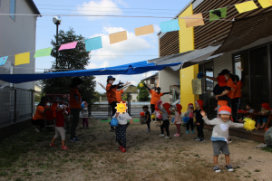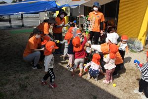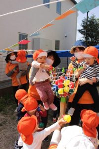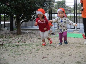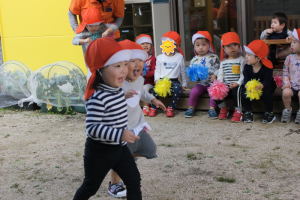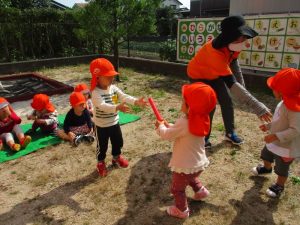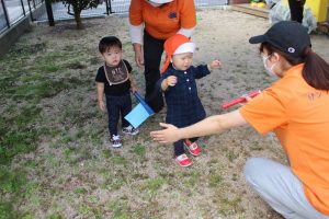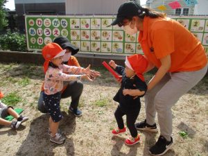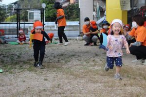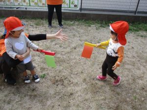 遊び時間の中でバトン渡しの練習もしてきたので、とても上手に次のお友だちに渡せましたよ![]()