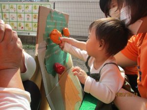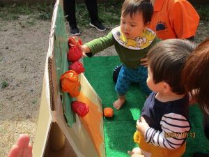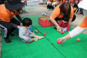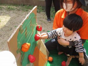 最初はなかなか入りませんでしたが、コツを覚えると上手に投げれる様になって、りんご組さんを中心にどんどん入る様になりました![]()