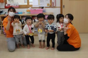 サンライズ2020 ミニミニ運動会に金メダリスト誕生の一場面がありました![]()