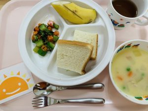 パン ホワイトシチュー ひじきのサラダ バナナ