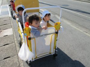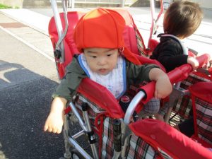 今まではバギーでお散歩を楽しんでいたお友だちも、次は散歩車に乗って出かけてみました![]()