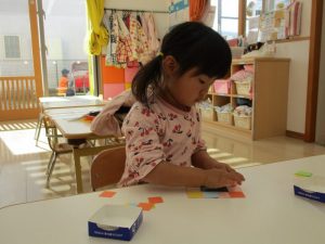 指先に糊をのせて、細かい作業もとても上手に出来る様になりました![]()
