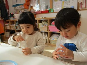 りんご組の子どもたちは、新しい遊びにチャレンジです![]()