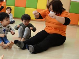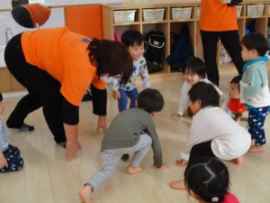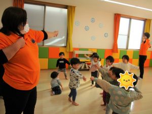 カリキュラム《体操》の時間では、先生の見本を見ながら、上手に動いていますよ![]()
