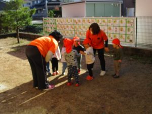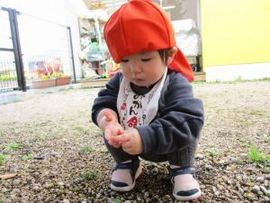 落ち葉や石を拾って、先生に渡しに来てくれる子どもたち![]()