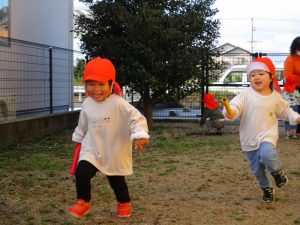 元気いっぱいのりんご組メンバーは、園庭でハッスルしましたよ![]()