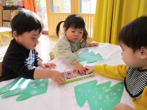 ポンポンやどんぐりを、もみの木に飾り付けて![]()