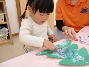 なんて事もありながら、それぞれが可愛いクリスマスツリーを完成させました![]()