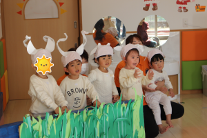 りんご組の子どもたちは、練習の時からとても上手に劇を見せてくれていました![]()