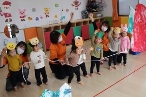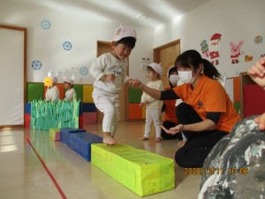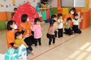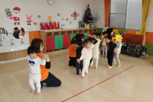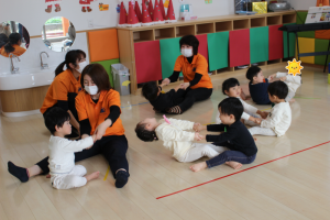 最後は、いつもカリキュラムや遊びの中で行っている体を使った遊びを披露しました![]()